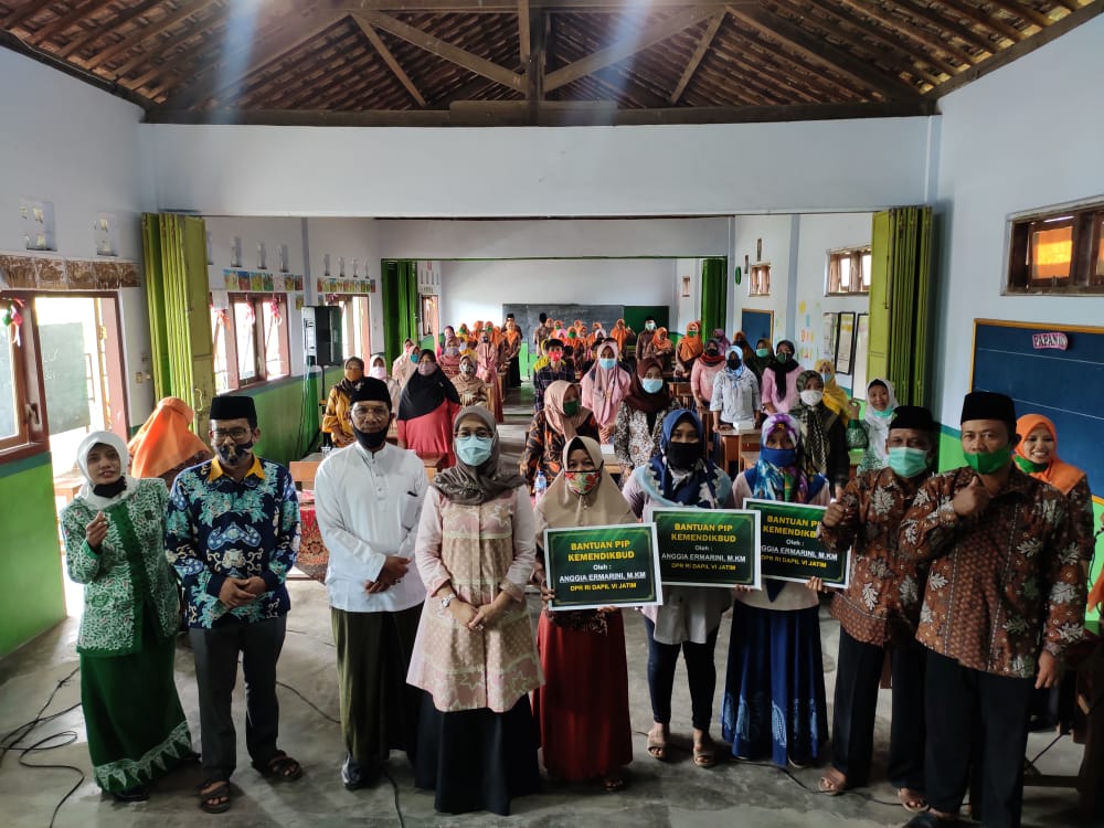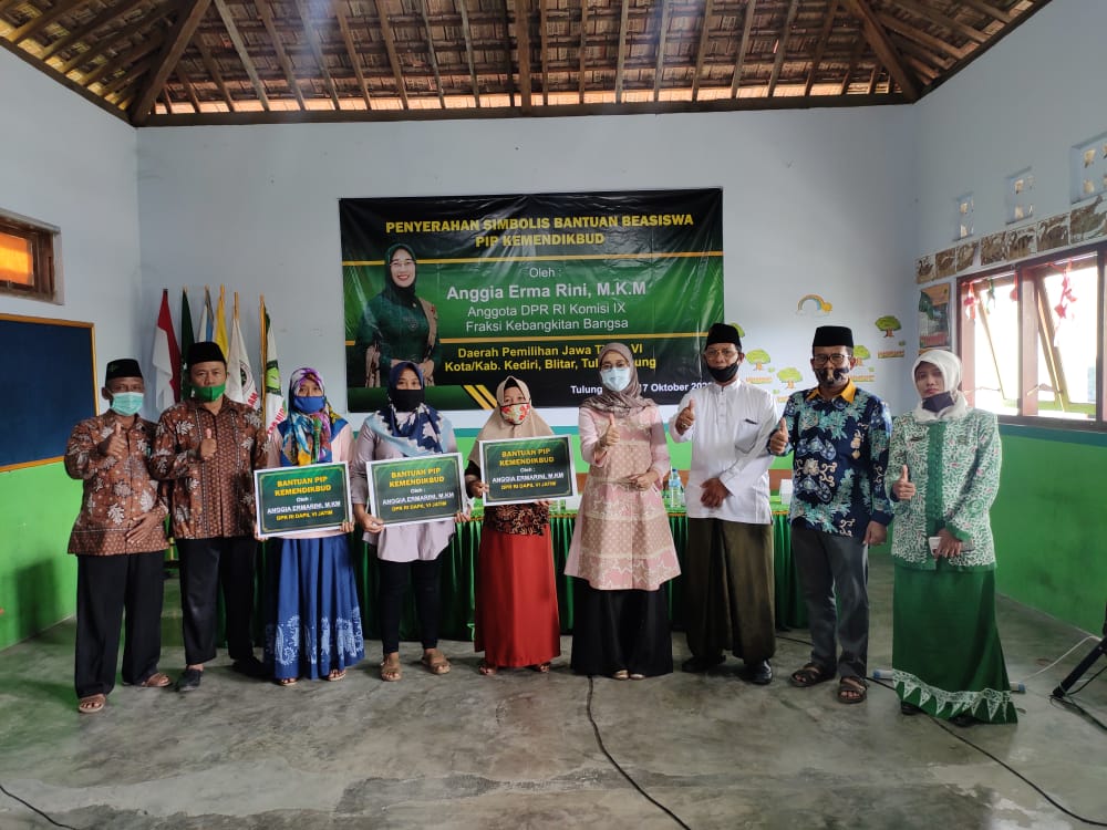 Sementara selain melaksanakan peletakan batu pertama gedung BLK komunitas Pesantren, ditempat berbeda Anggia Erma Rini secara simbolis menyerahkan bantuan beasiswa Program Indonesia Pintar (PIP) Kemendikbud kepada Sekolah Dasar Islam (SDI) Al-Hidayah Samir Kecamatan Ngunut sebanyak 100 siswa. SDI Al-Hidayah merupakan sekolah favorit di bawah naungan Lembaga Pendidikan Ma’arif Tulungagung.