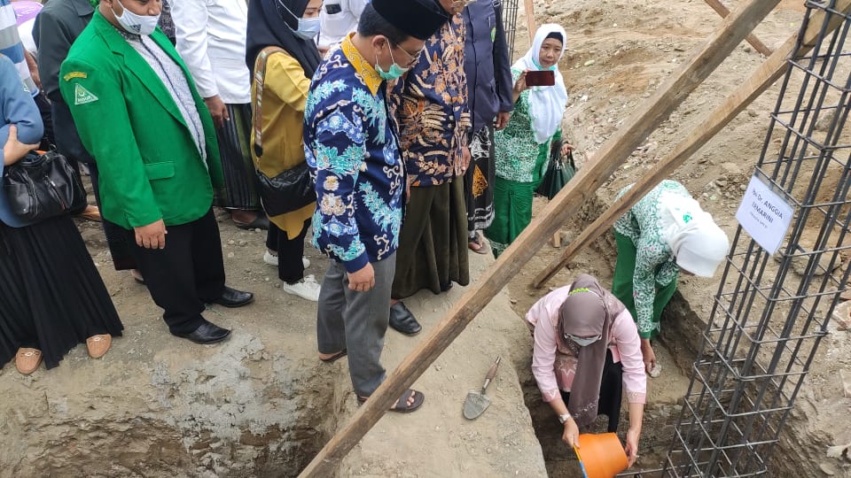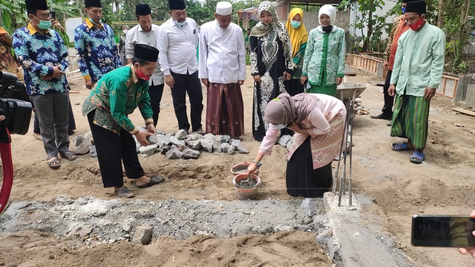 Anggia Erma Rini anggota DPR RI Komisi IX F-PKB meletakan batu pertama di ponpes sunan Kalijogo Ngunut.